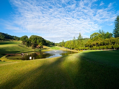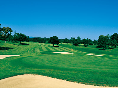 開場は昭和45年、コース全体が丘陵地に位置し、樹木によりセパレーツされた台地に18ホールを配置。丘陵地の平坦をダイナミックに攻めるOUTコース、ややUPダウンのある戦略的なINコース。場内の樹木は数十種類に及び春は梅の花に始まり数々の木花が目を楽しませてくれます。芽吹きの萌木色から始まる自然のパノラマは秋の紅葉まで展開され、来場者様を癒してくれます。コースはベントとバミューダ芝の2グリーン、いずれのグリーンも微妙なアンジレーションがありボールの落下地点によっては難易度の高いパッティングとなります。Aグリーン使用時は奥側のグリーンとなりBグリーンよりやや難度が上がります。コース内には約100個のバンカーが配置されグリーンをガード、全体的に「アゴ」高くバンカーからのショットを難しくしています。