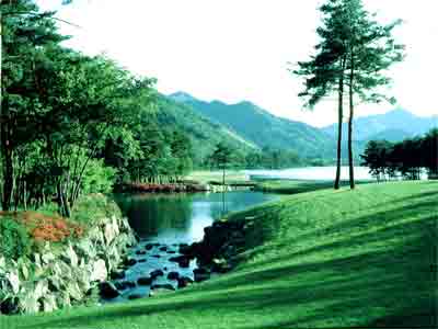 丘陵コース。国際的なトーナメントが開催出来る様にレイアウトしております。中でも大きなベントの1グリーンはアンジュレーションにも富み、米国のトーナメント開催コース並みのタッチ。コース名の通り松と池、そしてクリークがふんだんに取り入れられている。