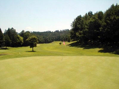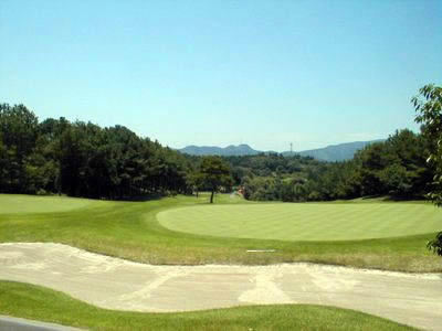 丘陵コース。起伏がなだらかな高原風のコースで、全長 7,177ヤードの雄大なチャンピオンコース。フェアウェイは広く距離もあるのでロングヒッター向きです。アウトは難しいホールが多く、スタートから気が抜けず、距離があり2オンが難しくなっています。また、5番は左ドッグレッグのミドルホールでHD1。総じて長いミドルが多い為、グリーンを外した時のアプローチがスコアメイクのポイントとなります。インもアウトよりはやさしいとはいえ、こちらも距離があるのでアプローチを大切に。最終ホール18番は池越えでプレッシャーがかかるホール。